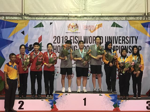 3月18日,2018年第七届世界大学生射击锦标赛在马来西亚雪兰莪州首府沙阿兰圆满落幕,本届锦标赛有来自中国、澳大利亚、意大利等24个国家和地区的代表队参赛。我校管理学院学生、高水平射击队队员胡家玮、王灵磊和赵雨泽,作为中国大学生体育协会选派的中国大学生体育代表团成员征战此次锦标赛,分别参加了男子50米手枪、男子10米气手枪和女子气10米气手枪的比赛。经过紧张激烈的角逐,赵雨泽与复旦大学王晓雨、清华大学朱欣夺得女子10米气手枪项目团体第二名;王灵磊与清华大学孙国宣、东南大学奚旭辰获得男子10米气手枪项目团体第七名。这是我校射击队队员首次在世界大学生射击锦标赛中获得奖牌。