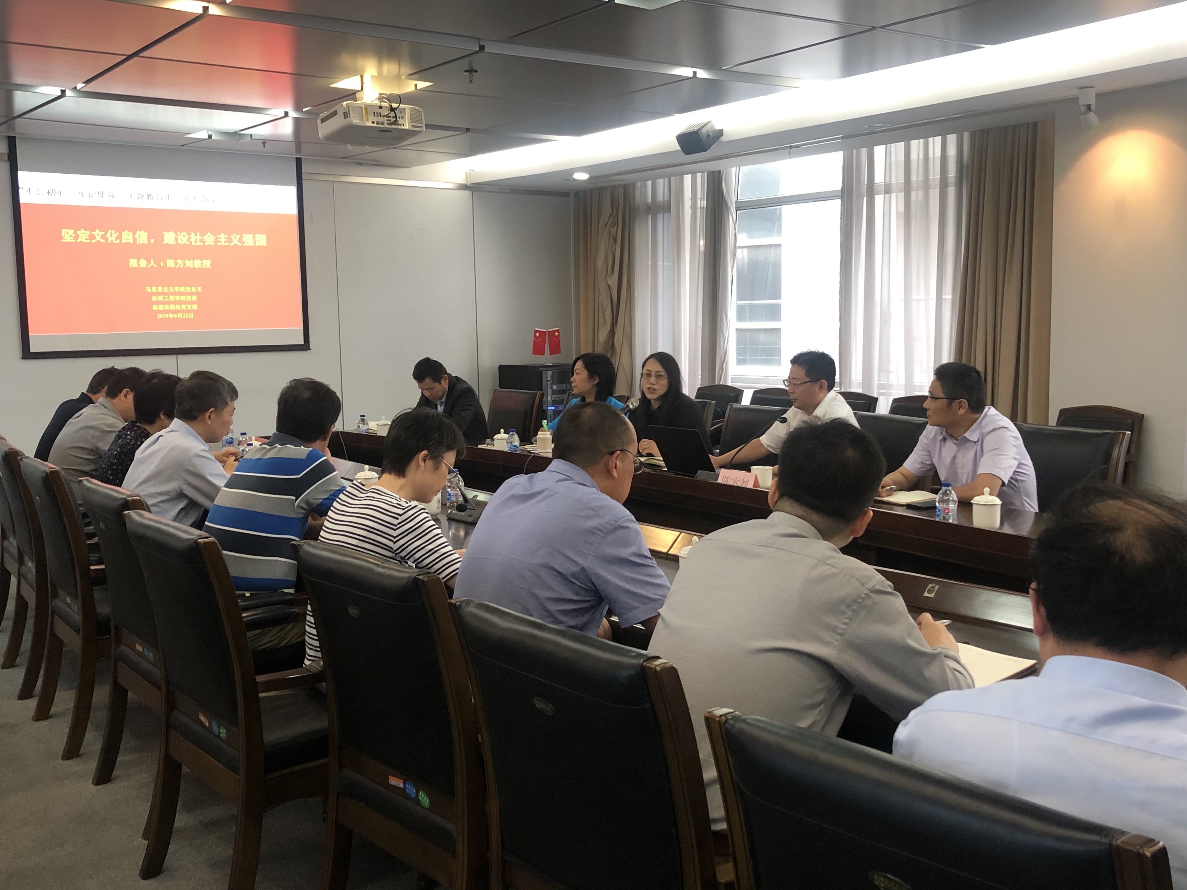 根据学校党委关于开展“不忘初心、牢记使命”主题教育工作部署和马克思主义学院开展主题教育的实施方案,9月23日上午,马克思主义学院党总支、机械学院党委联合开展“不忘初心、牢记使命”主题教育第一次专题学习,邀请上海市委党校马克思主义学院陈方刘教授作题为“坚定文化自信,建设社会主义强国”的专题讲座。专题学习由马克思主义学院党总支书记、院长王治东教授主持。